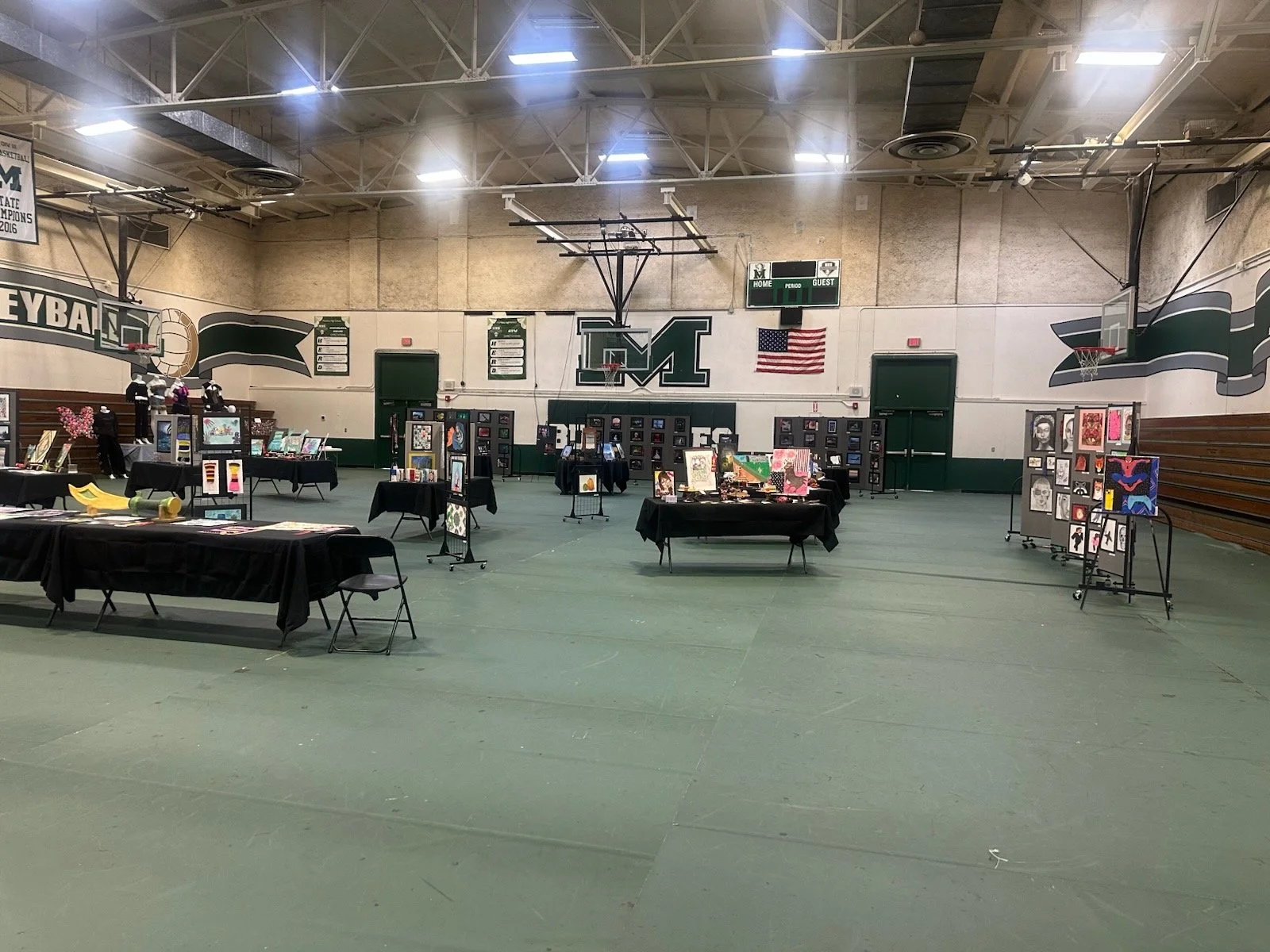 Inside the Manteca High Gym shows the annual art show on April 8, 2026, in Manteca, Ca. The photo shows a glimpse of the students at Manteca High art and how it was all set up by photography teacher Carol Creighton. (Photo was contributed)