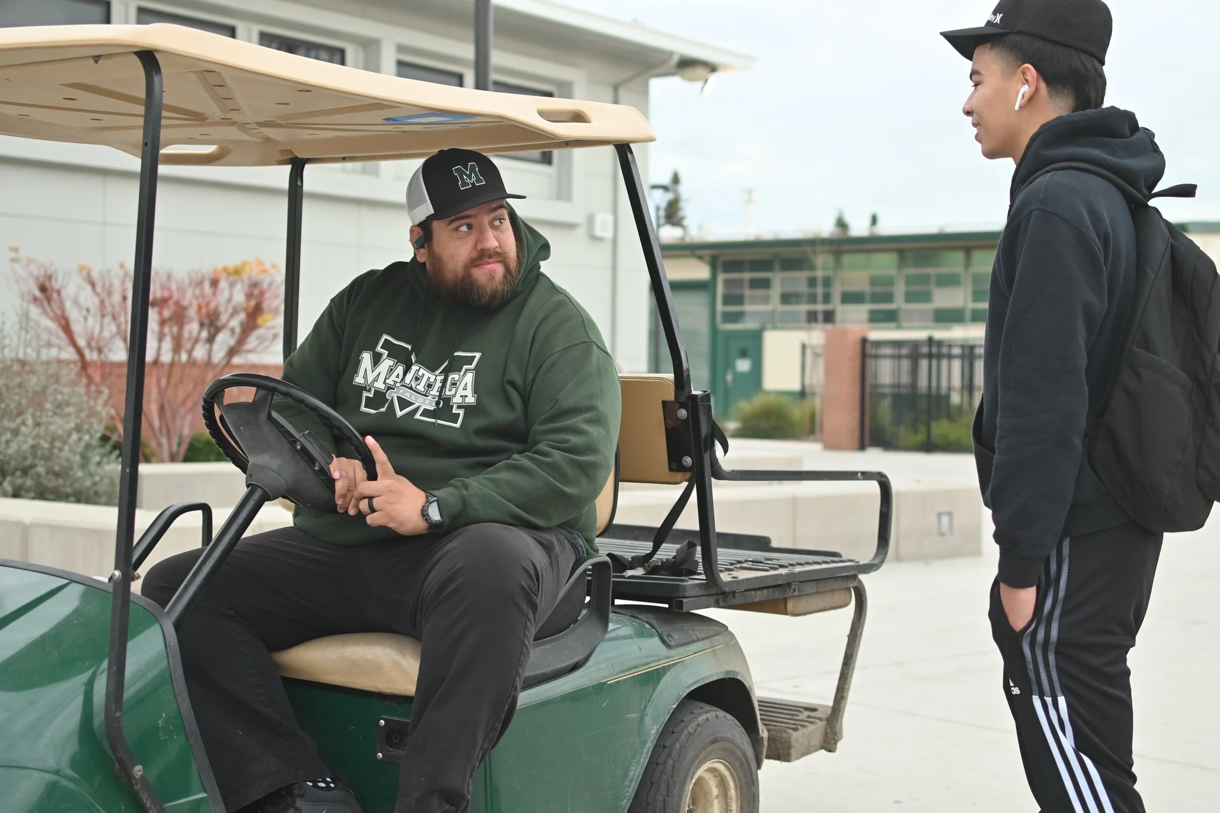Eric Gonzalez sits in front of the cafeteria listening to the muffled voices inside. A cold breeze blows past, but it does nothing to diminish Gonzalez’s warm heart for the people – students, staff and teachers – at Manteca High School.