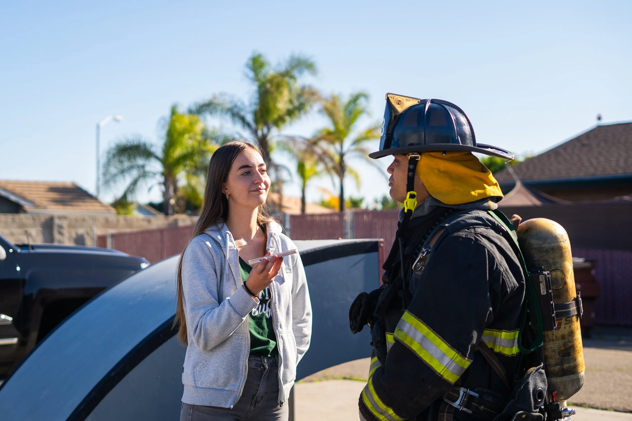 Manteca Firefighter Tyler Ellks is interviewed by The Tower about the fire academy (Raclif Figueroa/The Tower)