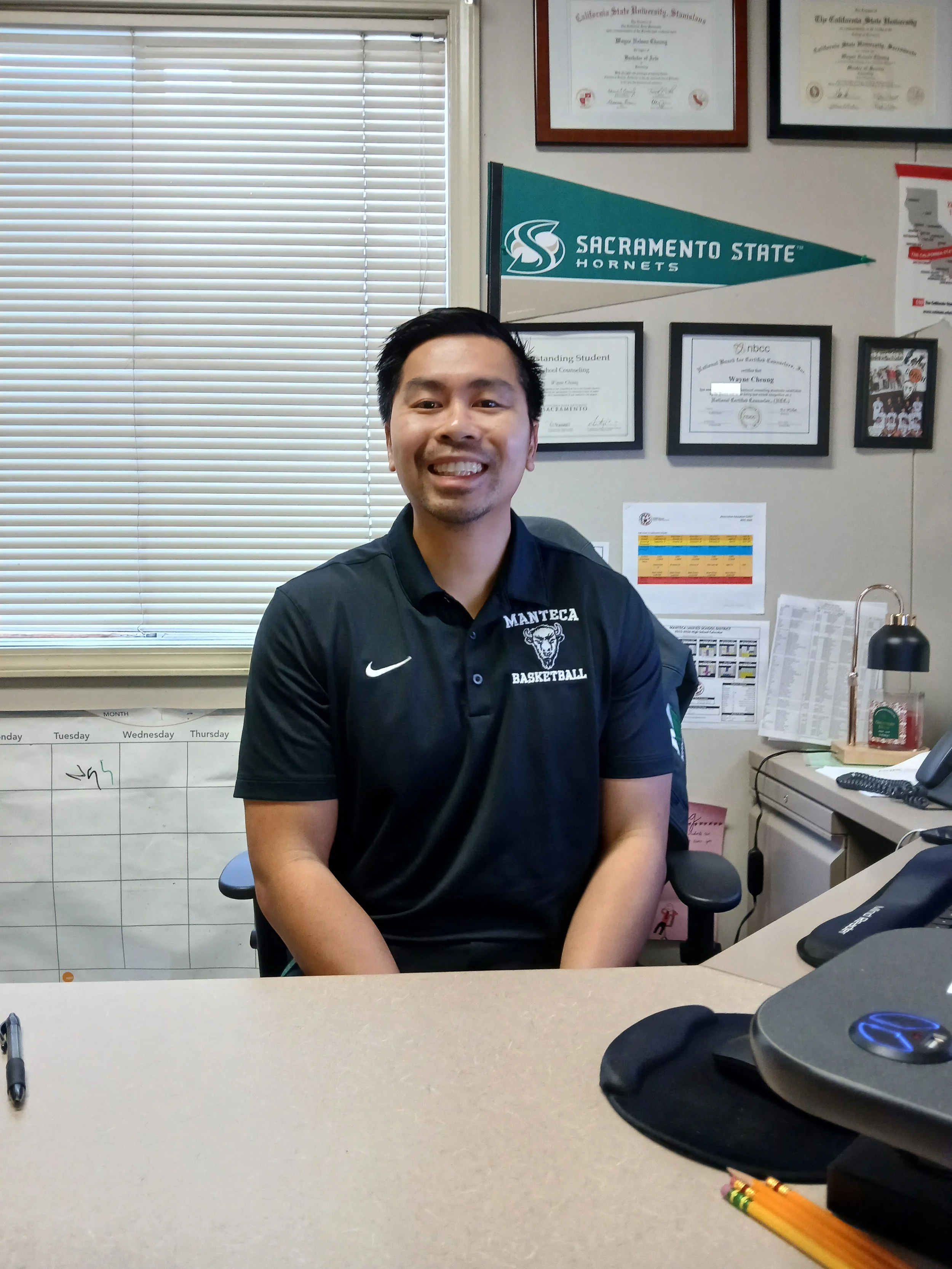 Wayne Cheung is a high school basketball coach and counselor at Manteca High School, who motivates student athletes and helps give students their desired classes for the school year.
